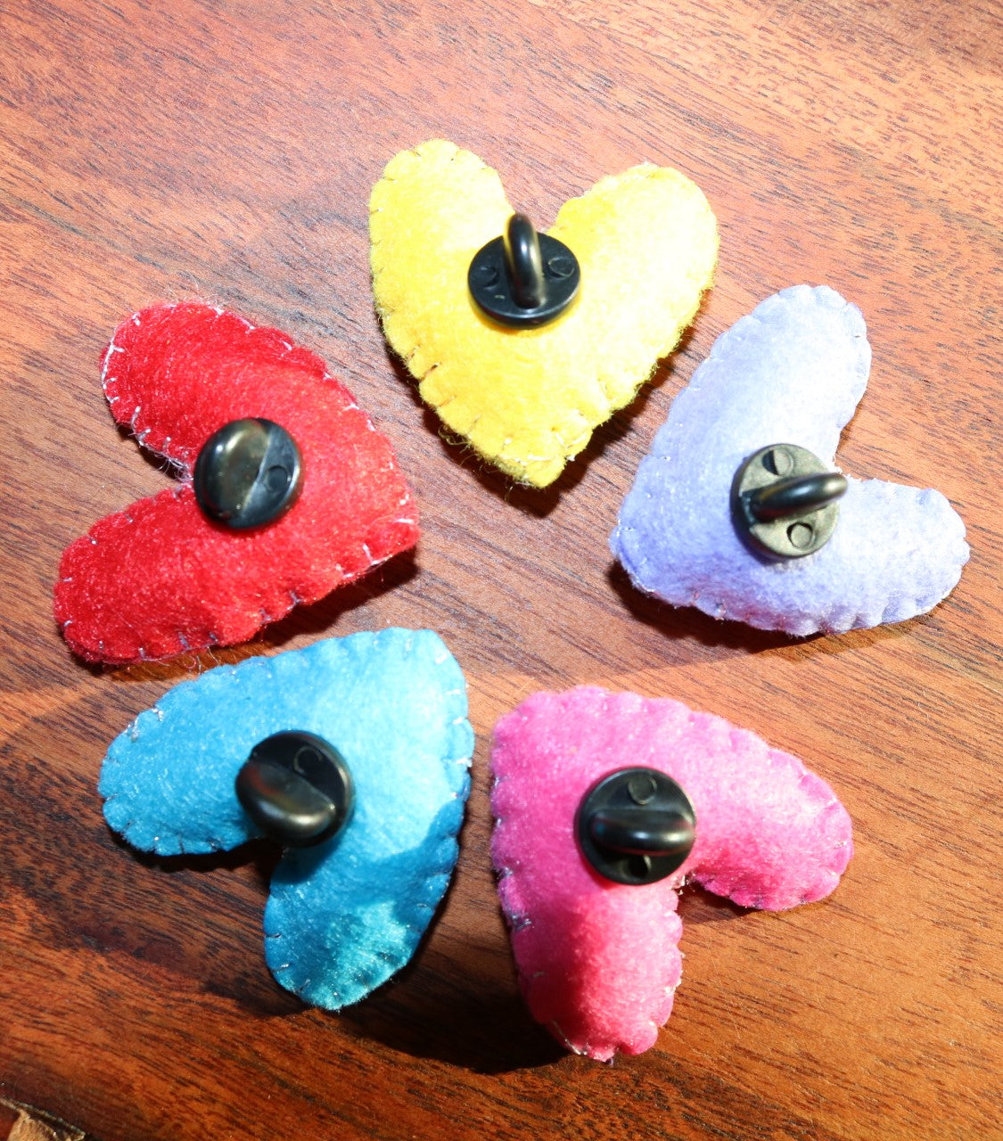 Unsere handgemachten bunten Filzherzen sind die perfekte Möglichkeit, dein Outfit aufzupeppen! Diese Herzen dienen als Broschen und können an Kleidung, Taschen oder sogar Hüten befestigt werden.