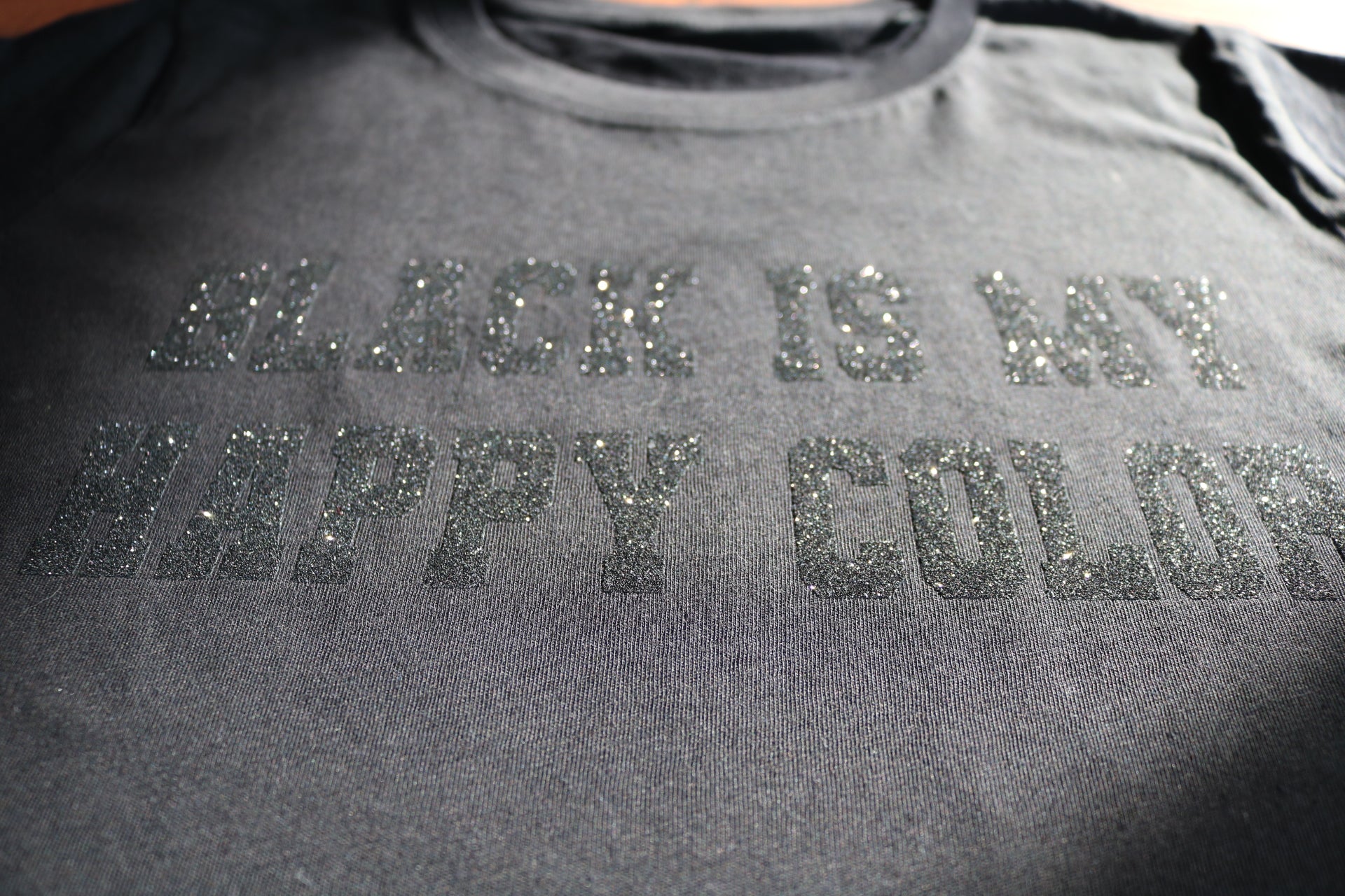 Dieses T-Shirt zeichnet sich durch seine besonderen Details aus - die Buchstaben sind mit schwarzem Glitzer Verziert
